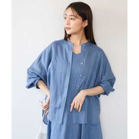 さっと羽織っても、プルオーバーとしても着こなしやすいシャツは、ナチュラルな素材の風合いも相まり、コーデにプラスするだけでぐっとおしゃれ見え。同素材のワンピースもご用意しているのでセットでの着用はもちろん、腰に巻けば旬なスタイリングが楽しめます。
