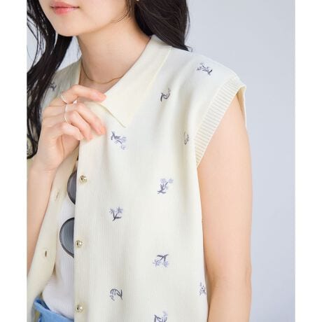 ・散りばめられた刺しゅうが目を惹く、シンプルながら着映えするニットベスト