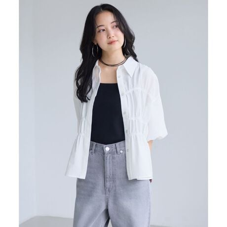 ・シャツを土台にビスチェ風のシャーリングを施した人気シリーズのデザインシャツです