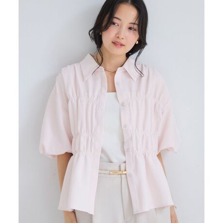 ・シャツを土台にビスチェ風のシャーリングを施した人気シリーズのデザインシャツです