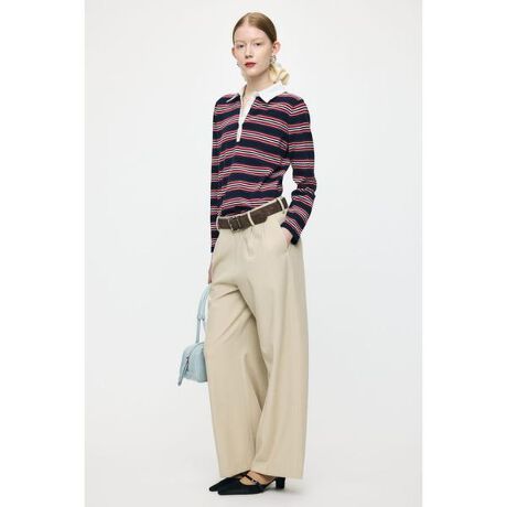 【TUCK WIDE TROUSERS/ タックワイドトラウザーズ】■ポイントダブルブレステットジャケットとセットアップで着用できるタックワイドトラウザー。腰まわりから裾にかけて美しく落ちるワイドシルエットが、スタイルに品のある存在感を与えます。■ディテールフロントに施したタックが立体感と動きやすさをプラス。程よい落ち感のある素材を使用し、ワイドながらもすっきりとした印象に。ウエストまわりはきちんと感のある仕立てです。■スタイリング同素材のダブルブレステットジャケットと合わせたセットアップスタイルがおすすめ。インナーをシンプルにまとめれば、オンオフ問わず活躍する洗練されたコーディネートが完成します。■生地透け感:なし裏 地:なし伸縮性:なし光沢感:なし■商品のお気に入り登録お気に入りアイテムの再入荷・在庫1点などの通知を受け取ることができます。■ブランドのお気に入り登録新作アイテムの入荷や人気アイテムの再入荷、おすすめトピックスなど、いち早くブランドの情報を受け取ることができます。[注意事項]※画像の商品はサンプルです。実際の商品と仕様、加工が若干異なる場合があります。※画像の商品は光の照射や角度、お使いのモニター環境により、実物と色味が異なる場合がございます。※着用、お取り扱いの際は、アテンションタグをご確認ください。