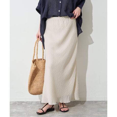 ・涼しげなカラミ織り素材を使用した、軽やかな印象のナロースカート。