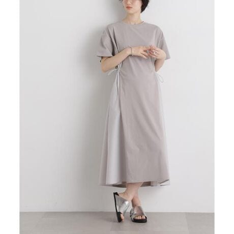異素材の組み合わせが印象的な、涼やかに着こなせるロングワンピース。サイドの切り替えとギャザーデザインが立体感を生み、一枚で着映えするアイテムです。