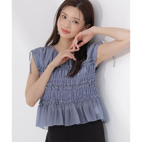 胸元の繊細なシャーリングとさりげなくあしらった小さなフリルがポイントのブラウス。着るだけで立体感が生まれ、顔まわりを華やかに見せながら女性らしい印象もプラス。シャーリング下から広がるふんわりシルエットが、気になる腰まわりをカバー。ボトムスを選ばず、さらっと着るだけでバランスの取れたスタイリングが完成します。