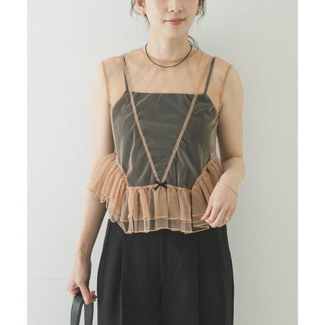 軽やかで繊細なチュール素材を使用したラッフルトップス。