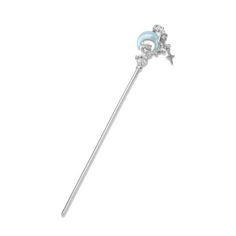 透け感のある淡いブルーの三日月がアクセントとなりシルバーの繊細な装飾と相まって幻想的な雰囲気を演出。