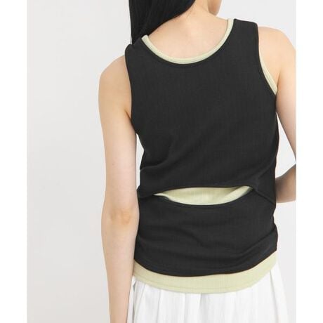ベーシックなタンクトップの上に、バックオープンデザインのタンクトップを重ねたSETアイテム。バイカラーがポイントになっており、SETで着ていただくとこなれ感を演出します。別々でも着回せるので1枚持っておくと万能です。