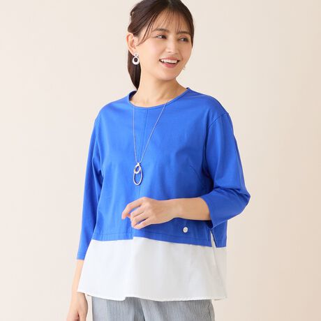 身頃上部は柔らかい風合いの綿天竺を使用し、裾は薄手の布帛を組み合わせました。
