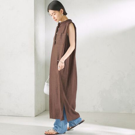 シンプルながらも一枚でサマになるデザインで、体型カバーも叶うのが嬉しいポイント。