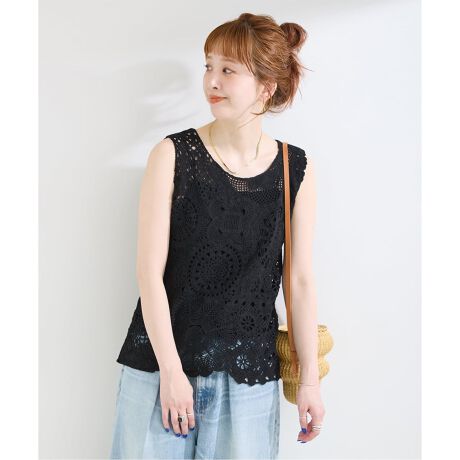 春から夏まで長く楽しめる、表情豊かなクロッシェ風ニットタンクトップ。