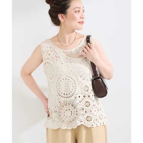 春から夏まで長く楽しめる、表情豊かなクロッシェ風ニットタンクトップ。