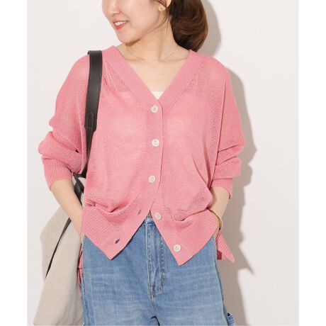 ■麻がミックスされたミドルゲージのサマーニットカーディガン