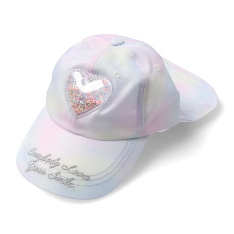 ネットショップと専門店、セレクトショップなどでの限定のアイテム!直営店では直営オンラインショップ「こどもの森e-shop」各店のWEB店限定のみでの販売になります。【直営実店舗での販売はありません。】夏のお出かけやレジャーにオススメなキャップ、帽子。キラキラ光るスパンコール入りのハートが可愛い。つばの部分のキラキララメの入ったロゴの刺繍もポイント!女の子心をくすぐる可愛さ♪日よけのたれはマジックテープで取り外し可能。また日よけの内側に保冷剤を入れるポケット付きです。(保冷剤は付きません。)UVカット加工。全サイズあごゴム付です。【アイテム】 雑貨 カジュアル お洒落 オシャレ かわいい 可愛い 普段着 デイリーウェア お出かけ 子ども こども 女児 女の子 ガールズ キッズ ベビーサイズ トドラーサイズ 幼稚園 保育園 小学校 通園 通学 小学生 遠足 旅行 2026年春夏物新作 丸高衣料 小物 ラベンダー 薄紫色 レインボーカラー 虹色 キッズフォーレ