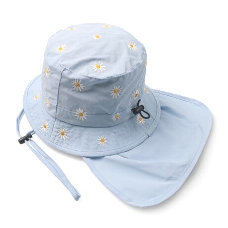 ネットショップと専門店、セレクトショップなどでの限定のアイテム!直営店では直営オンラインショップ「こどもの森e-shop」各店のWEB店限定のみでの販売になります。【直営実店舗での販売はありません。】デイジーのお花の総柄刺繍が可愛いハット、帽子!日除けのたれ部分には保冷剤を入れるポケット付き。UVカット加工で日焼けを防止。撥水、はっ水加工なのでちょっとした水遊びやアウトドアにも最適!内側のバンドに汗をすばやく吸収して乾かす吸水速乾素材を使用しているます!機能性もあり、夏のお出かけやレジャーにオススメなアイテム。【アイテム】 雑貨 カジュアル お洒落 オシャレ かわいい 可愛い 普段着 デイリーウェア お出かけ 子ども こども 女児 女の子 ガールズ キッズ ベビーサイズ トドラーサイズ 幼稚園 保育園 小学校 通園 通学 小学生 遠足 旅行 2026年春夏物新作 丸高衣料 小物 フラワー ラベンダー 薄紫色 ネイビー 紺色 サックス 水色 キッズフォーレ