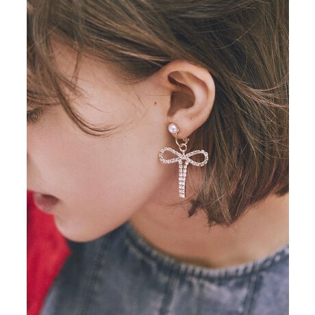 ビジューリボンデザインが、トレンド感たっぷりなイヤリング。