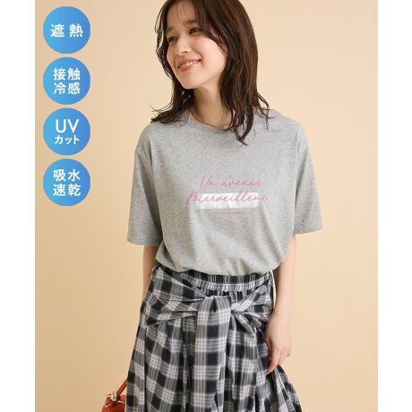 繊細な箔プリントロゴがさりげなく輝き、シンプルながらも女性らしい上品さを引き立ててくれるTシャツです。主張しすぎないデザインなので、どんなボトムにも合わせやすく、着回し力の高さが魅力です。遮熱やUVカット機能により、暑い季節の外出やレジャーにも安心して着用できます。接触冷感のやさしい肌触りで、長時間でも快適に過ごせます。ほどよくゆとりのあるシルエットがリラックス感を演出しつつ、こなれた印象に仕上げてくれます。日常使いはもちろん、お出かけシーンにも活躍する万能なアイテムです。