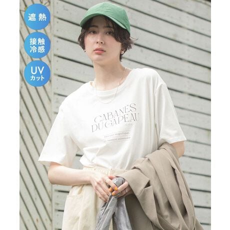 洗練された多段ロゴが目を引く、きれいめな印象のTシャツです。シンプルながらも存在感があり、着るだけでコーディネートに上品なアクセントを加えてくれます。遮熱機能とUVカット機能を備えているため、日差しの強い季節でも安心して着用できるのが嬉しいポイントです。さらに接触冷感素材で、肌に触れた瞬間ひんやりと心地よく、暑い日でも快適に過ごせます。程よくゆとりのあるシルエットで体のラインを拾いにくく、リラックス感のある着心地も魅力です。パンツにもスカートにも合わせやすく、デイリーからお出かけまで幅広く活躍します。