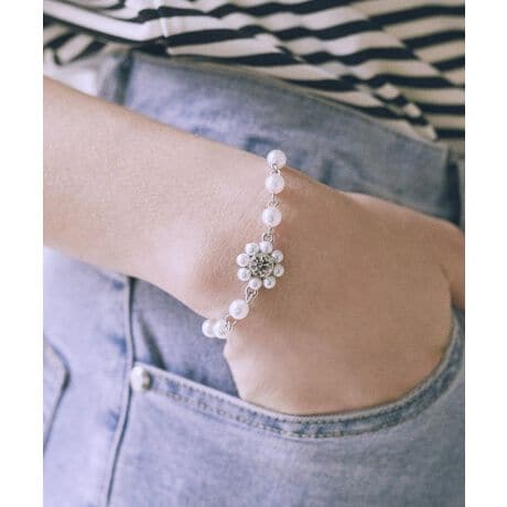 パールで仕立てたフラワーモチーフのビジューが、大人可愛いブレスレット。