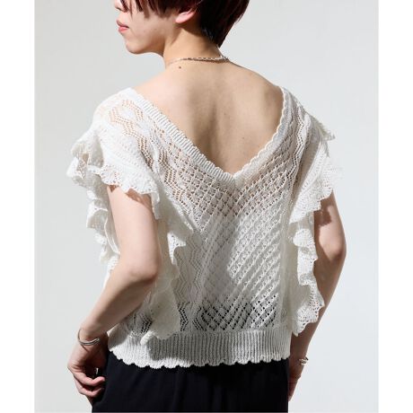 《予約/一部店舗限定》クロシェニット Vネックレイヤードベスト