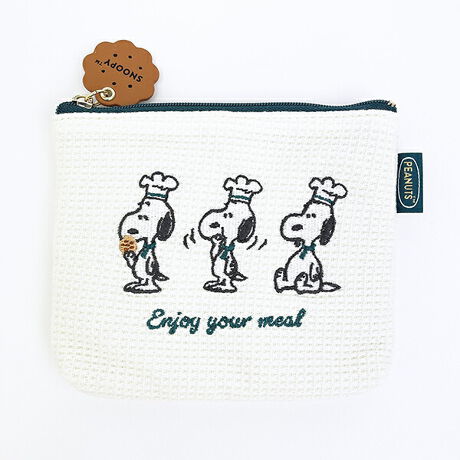 スヌーピーのティッシュポーチです♪シェフスヌーピーの刺しゅう&クッキーチャームがとってもキュート♪ティッシュとリップや目薬などの小物も入って、とっても便利♪同シリーズの他アイテムと一緒に、揃えたくなっちゃう☆彡