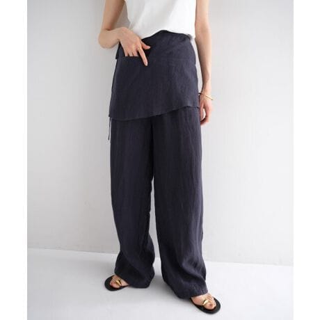 リネン ラップスカート(レイヤード用) 巻きスカート evernavy エバーネイビー