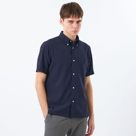 ビジカジ兼用でスタイルを問わずに着用いただけるスクエアカットの半袖ボタンダウンシャツ。衿先の自然なロール感をきれいに出し、着用時の立体感が首回りをすっきり見せてくれます。後身にダーツがあり、ウェストを程よくシェイプさせ、体のラインをきれいに見せてくれるシルエットも特長。スクエアカットの裾で、綿パンツ合わせなどパンツアウトスタイルでも着用しやすいデザインです。後襟ぐり、脇下部分には消臭機能のあるテープを縫い込んでおり、気になる臭いを抑えてくれます。