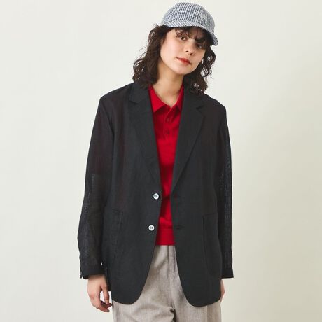 ゆったりとしたシルエットでカーディガン感覚で羽織れるメッシュ素材のリネンシングルジャケット。麻100%のメッシュなので暑い日でも涼しく着用可能です。