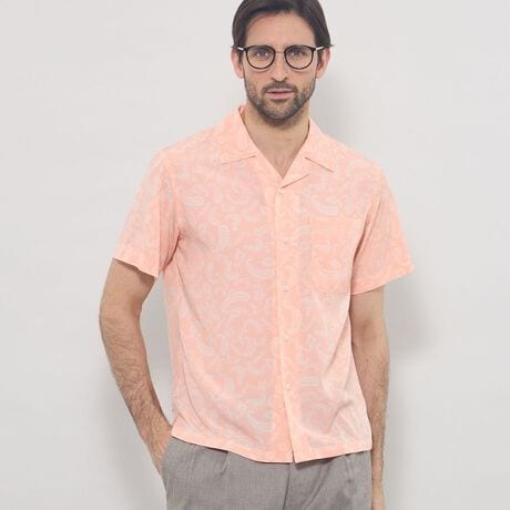 リラックスムード満点の半袖オープンカラーシャツです。程よい膨らみと落ち感のある上質な素材感でカジュアルになり過ぎず、程よくきれい目なスタイルにも合わせられます。英国らしいペイズリー柄をトーナルな配色で上品にまとめました。