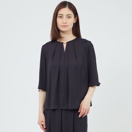 【WEB・一部店舗限定】【ウォッシャブル/防しわ性】バックサテンジョーゼット ブラウス