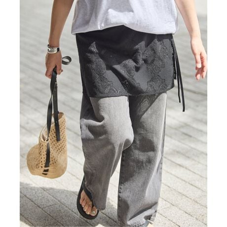 着心地:巻きスカートでウエストを調整でき楽な穿き心地です。
