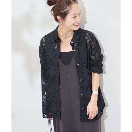 繊細なコード刺繍が施されたレースでおつくりしたシャツ。