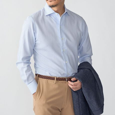 ノーネクタイのビジネススタイルにおすすめのシャツです。