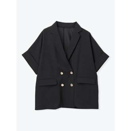 麻調鹿の子ダブルボタン半袖ジャケット