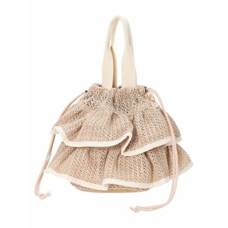 [型番:26570361733]ひらりとしたフリルに配色パイピングを施した巾着バッグ。付属のショルダーストラップを付ければ、ななめ掛けとしてもお使いいただけます。スタイリングにシーズンムードを取り入れてくれるアイテム。ワンピースやデニムスタイルと合わせたスタイリングもおすすめです。