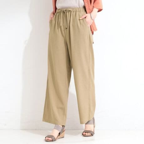 通気性に富んだ素材感で、汗や湿気を素早く逃がし一日中さわやかで快適な穿き心地なワイドパンツ。