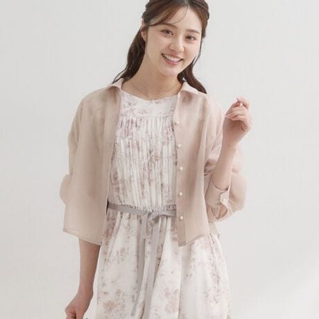 パール調ボタン・オーガンジーショート丈シアーシャツ