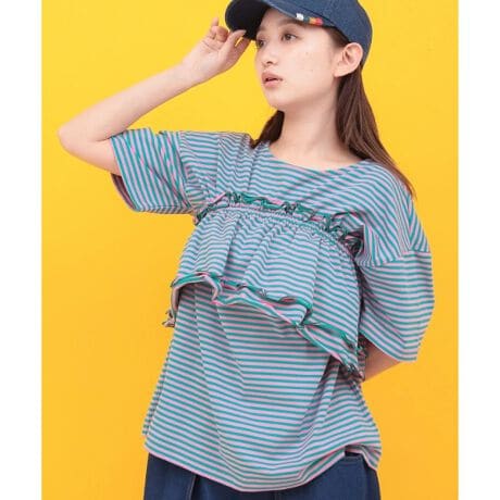 シンプルなTシャツに、マルチに使えるフリルがセットになったアイテムです。