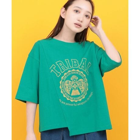 カレッジプリントがポイントのリメイク風Tシャツ。