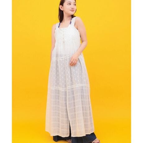 前開きタイプのキャミソールワンピースで、軽やかに着こなせるデザイン。