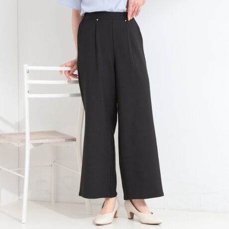 落ち感のある素材を使用したワイドパンツ。
