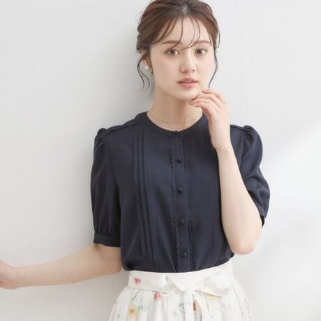 ピンタックレースブラウス