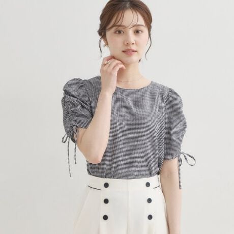 大人可愛い袖コンシャスなチェックブラウスです。