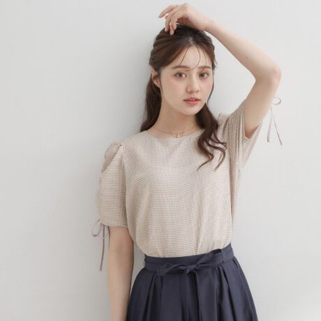 袖口のドロストリボンを絞ることで、ふんわりとしたボリューム感を調整可能。