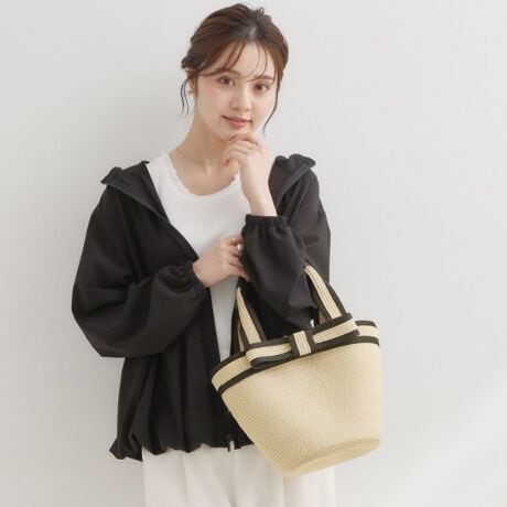 ナチュラルな編地に配色リボンをあしらったリボンペーパートート。