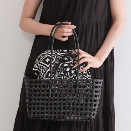 メルカドトートならではの編み柄が、シンプルな装いに季節感とほどよい存在感を添えるデザインです。