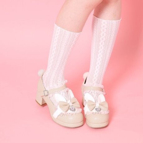 大きな耳とかかとのポンポンがかわいいパンプスです。