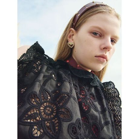 <b>【アンティークハンカチを纏う贅沢。クラフト感溢れる刺繍とトリミングが目を惹くブラウス】</b>