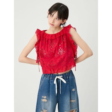 アンティークのハンカチを繋ぎ合わせて一着の服に仕立てたような、スクエアフォルムが印象的なブラウス。襟から身頃、裾にかけて贅沢に施した刺繍と、全体を縁取る繊細なテープトリミングが、手仕事の温もりを感じさせるクラシカルな佇まいを演出します。サイドには華奢なリボンをあしらい、きゅっと絞ることでシルエットに変化をプラス。そのままラフに纏うのはもちろん、ボトムに合わせてボリュームを調整できる、こだわり抜いたディテールが魅力です。