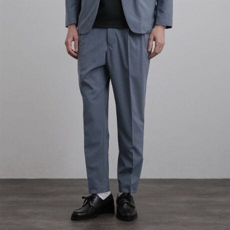 腰回りに程よいゆとりを持たせつつ、裾に向かって緩やかに細くなるテーパードシルエットが、脚のラインをすっきりと見せ、クリーンな大人の雰囲気を演出します。