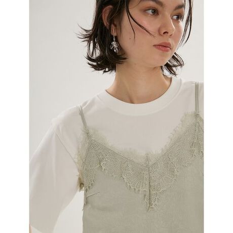 さらっとした薄手のコットン素材を使用したオーバーサイズTシャツのラフさと繊細なレースとサテンの甘さがミックスされたコーデの主役になる一着。
